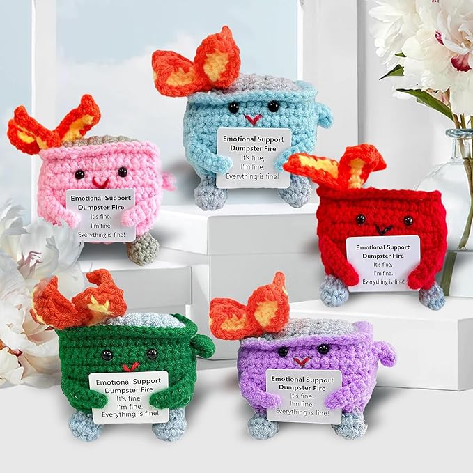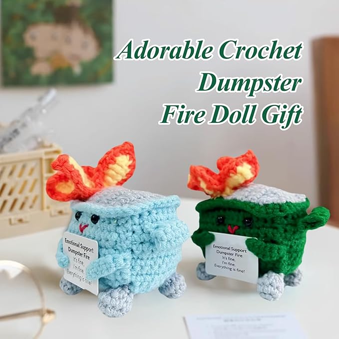 Тази плетена на ръка фигурка „Пламтящ контейнер“ с емоционална подкрепа е внимателно изработена и изглежда сладко и привлекателно 😊